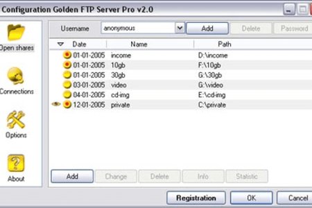 Golden FTP server - это бесплатный персональный FTP сервер для Windows. Программа максимально проста и удобна в использовании с интуитивно понятным мультиязычным интерфейсом. FTP сервер запускается автоматически при загрузке Windows.