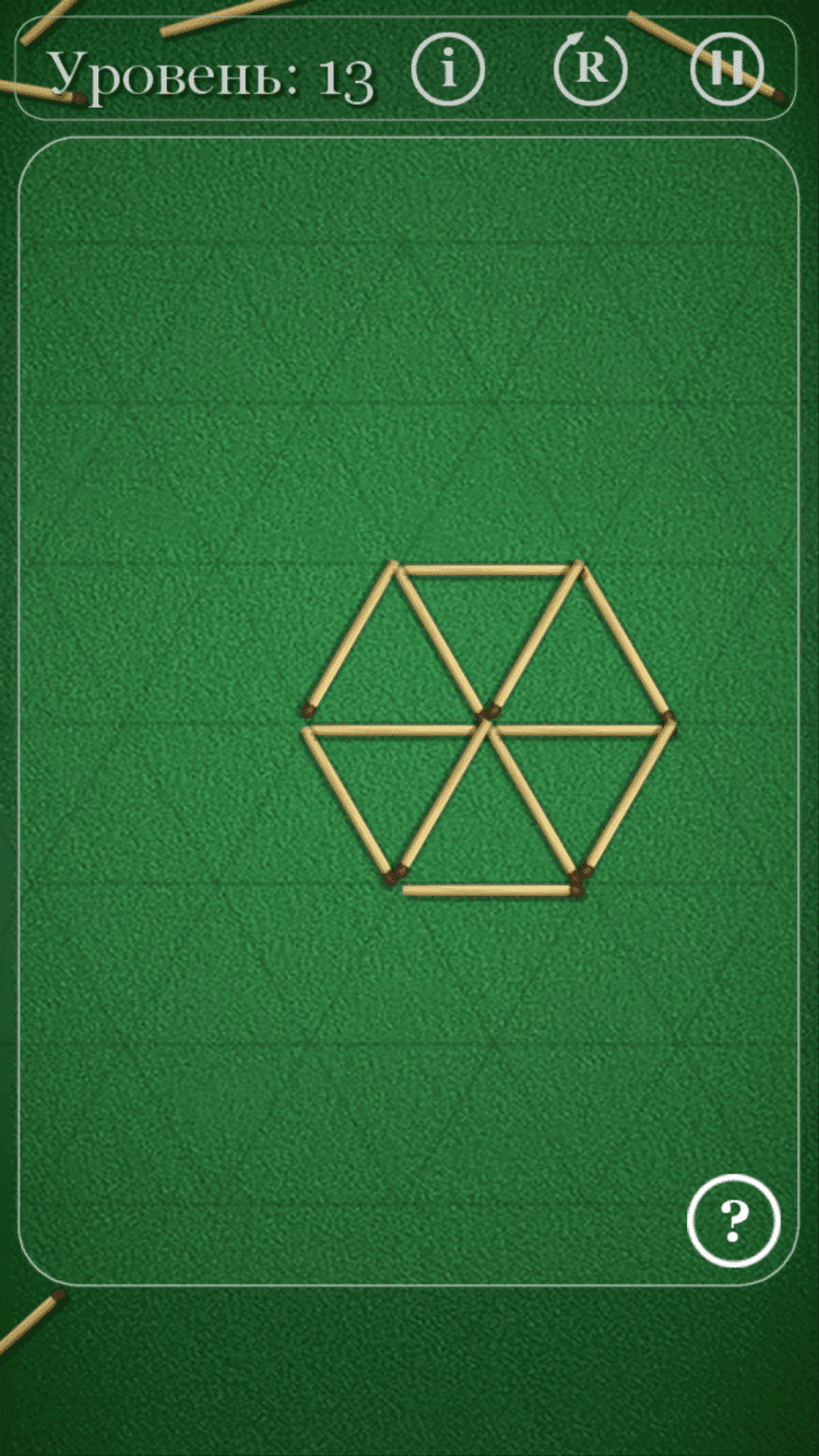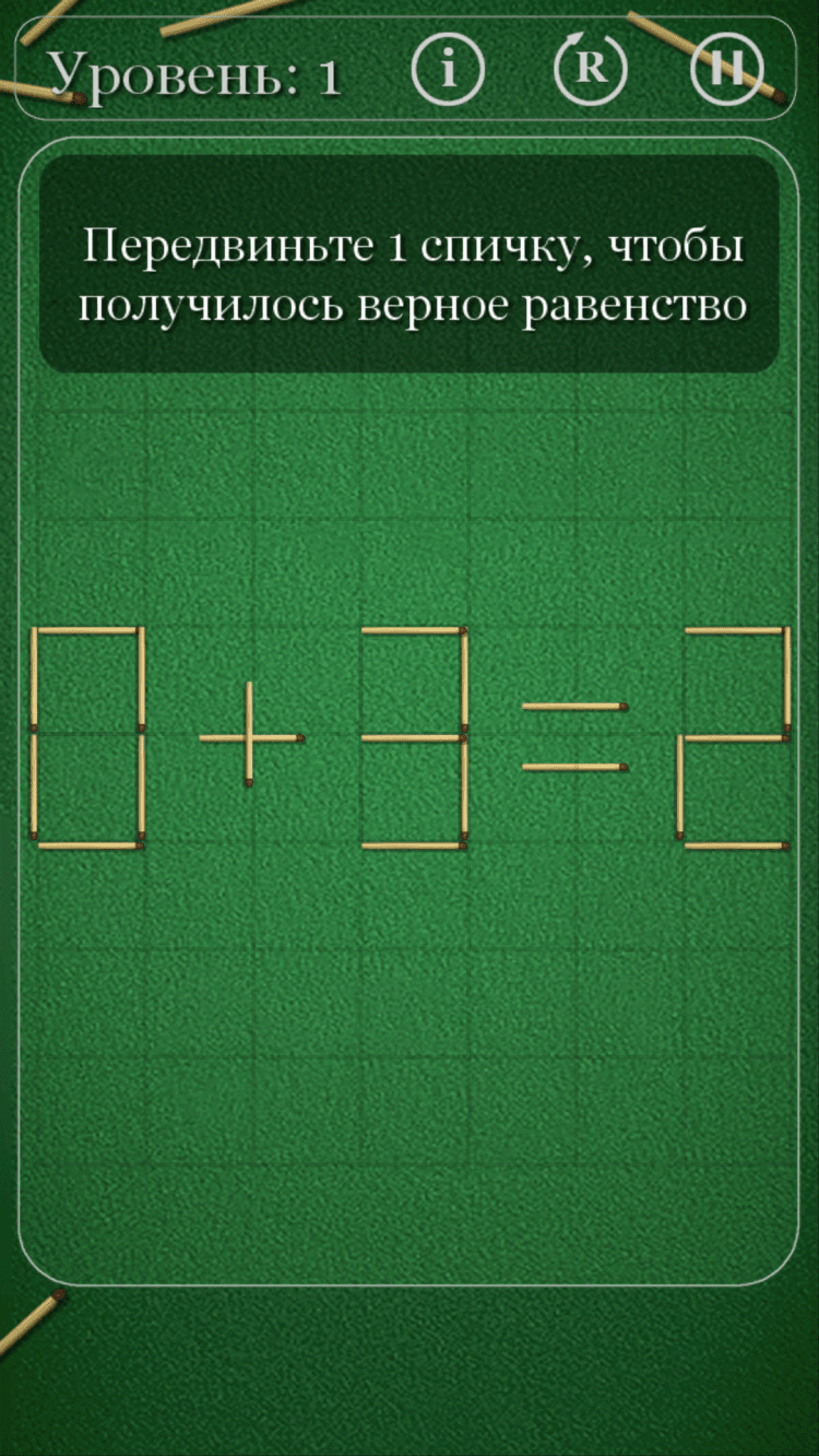Правила просты: на экране фигура из нескольких спичек, но она не закончена. Передвиньте, уберите или добавьте несколько спичек и готово.