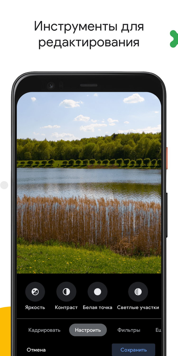 Помимо этого, Google Фото обладает встроенным фоторедактором. Всего в один клик, вы сможете настроить цвета, накладывать многочисленные фильтры и преображать свои фотографии при помощи других инструментов.