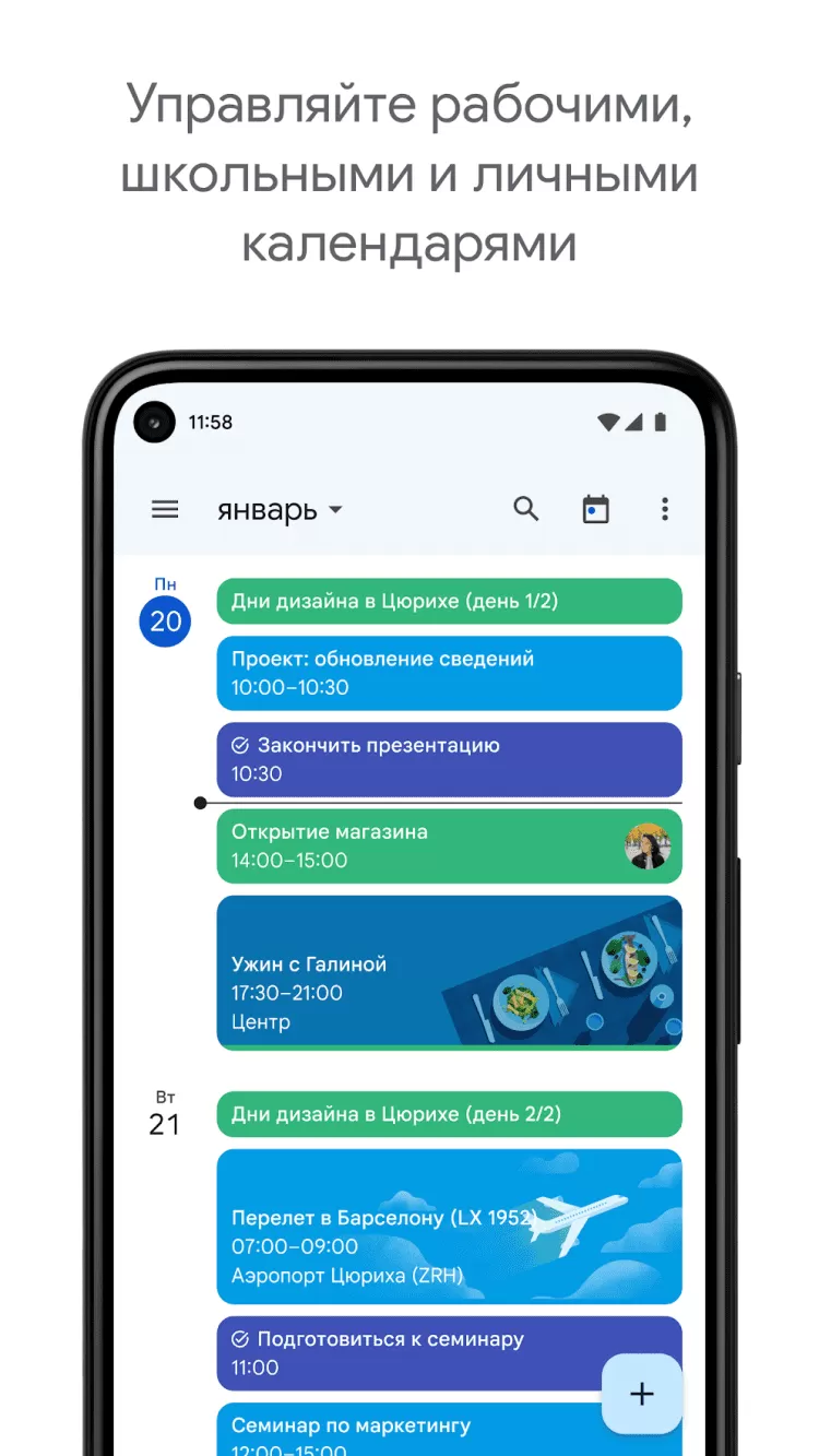Скачайте приложение Google Календарь для Android и с легкостью сохраняйте информацию обо всех предстоящих делах и настраивайте удобные напоминания, чтобы не забыть ничего важного.