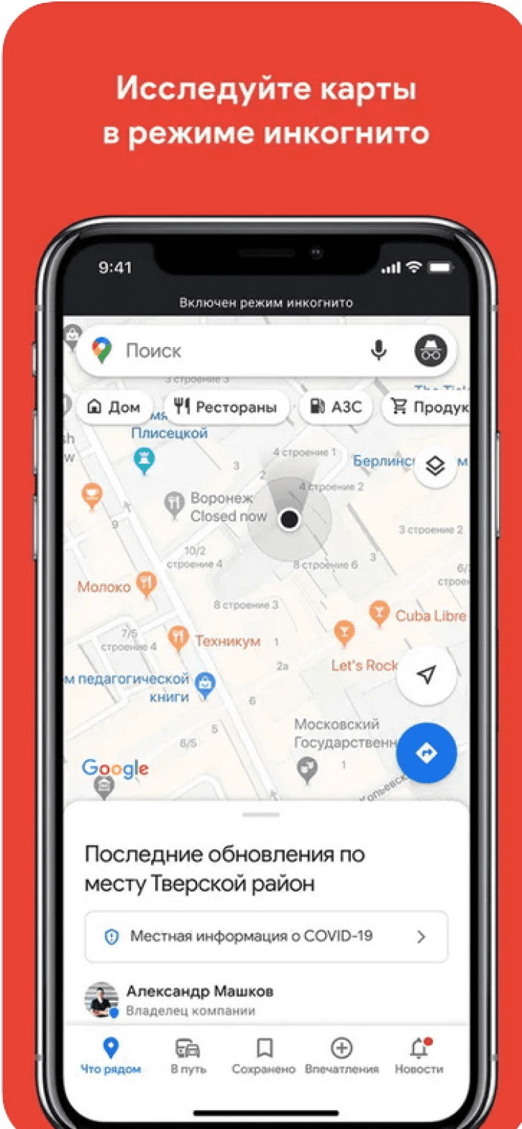 Скачайте Google Maps на свой iPhone, iPad или iPod Touch и просматривайте подробные и актуальные карты в любой момент, чтобы не заблудиться и найти нужное место даже в незнакомом городе.