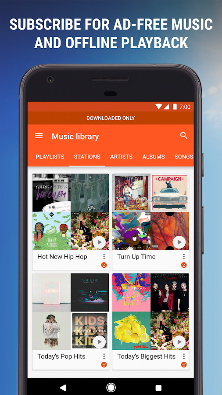 В программе Google Play Музыка вы найдете миллионы различных треков, радиостанций и плейлистов на любой вкус. Приобретайте понравившиеся альбомы и слушайте их в любом месте и в любое время без синхронизации, либо сохраняйте их в памяти гаджета для прослушивания в режиме офлайн.