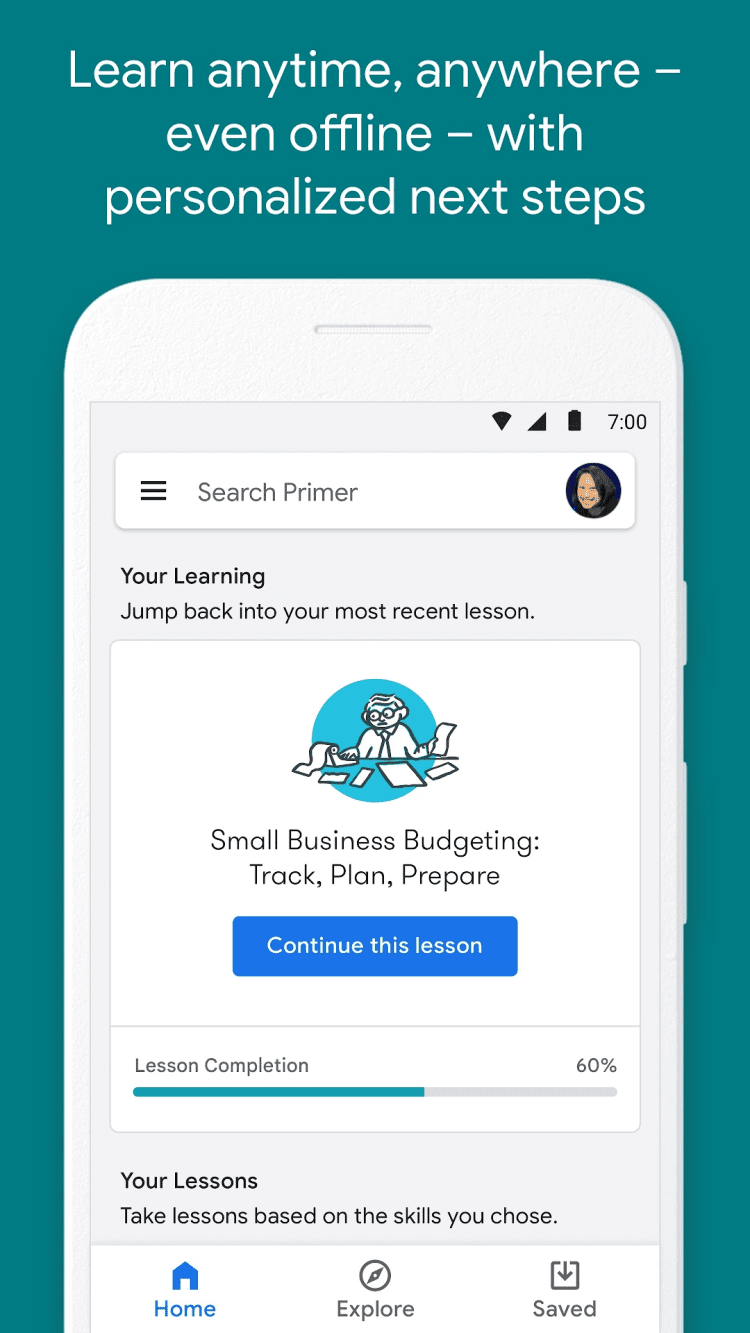 Кроме этого, Primer by Google поможет применить полученные знания в деле. В конце каждого урока, вы получите персонализированные задачи, которые будут автоматически сохранены для вас.