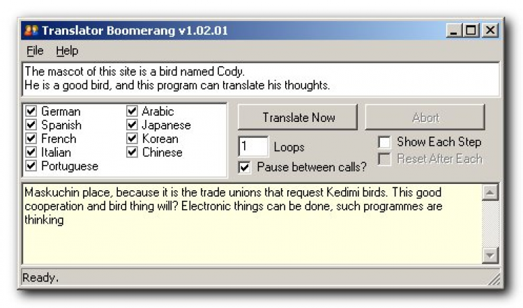 Google Translator Boomerang - это очень простое в использовании настольное приложение, которое использует сервисы Google Translate для перевод текстов на иностранные языки. Данное приложение Вы можете скачать абсолютно бесплатно на нашем сайте.