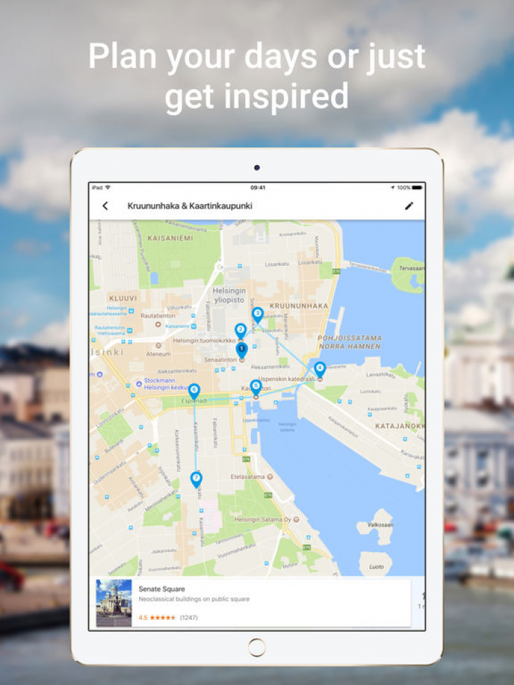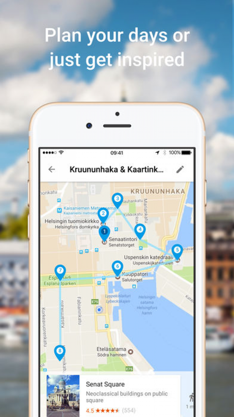 Для сотен городов со всего мира, программа готова предложить индивидуальный распорядок дня, следуя которому, вы сможете посетить огромное количество мест, специально подобранных на основе ваших интересов и имеющегося свободного времени.
