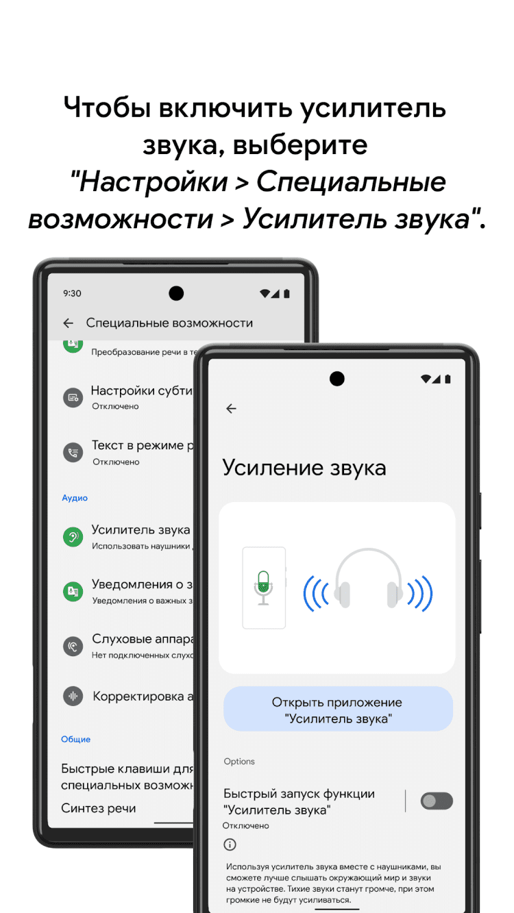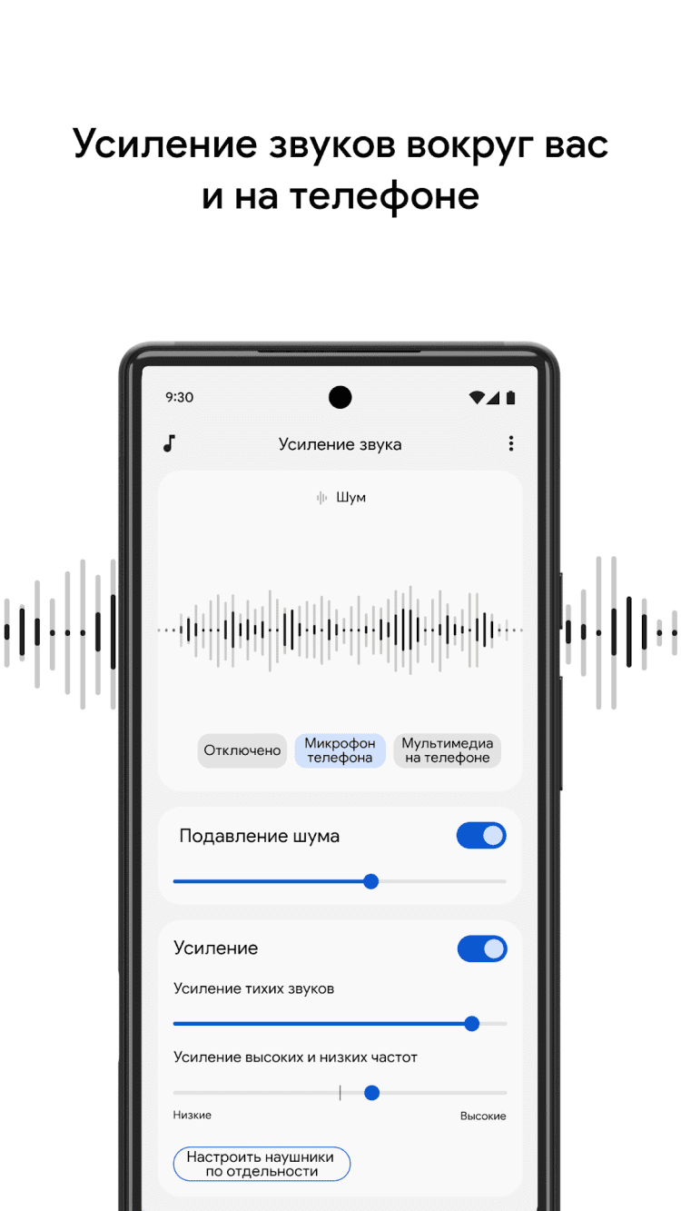 Google Усилитель звука — это программа для улучшения отчетливости звучания звука в наушниках, подключенных к вашему мобильному телефону. Позволяет снизить громкость фоновых шумов и усилить музыку, голос собеседника и прочие нужные звуки.