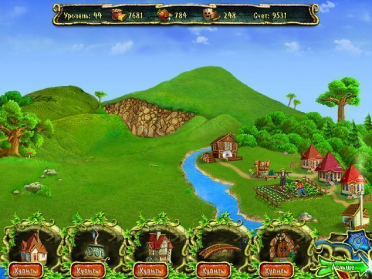 Любая созданная вами цепочка добавляет немного волшебной энергии к шкале индикатора прохождения уровня. Как только он полностью заполнится, вы сможете перейти к экрану строительства, чтобы создать новое здание. Возводить город придется в чистом поле, поэтому для начала постройте огород, колодец и другие строения первой необходимости.