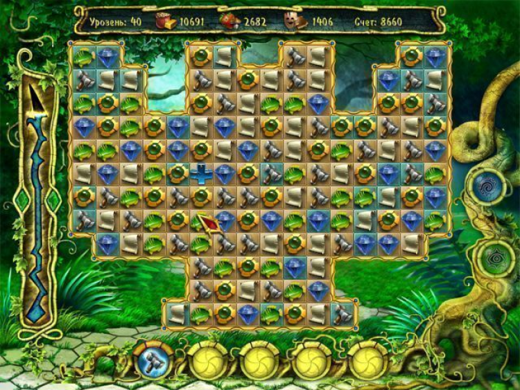 Создавайте цепочки над такими клетками, чтобы разбить их. Это поможет быстрее завершить уровень и добыть больше ресурсов. Периодически на игровом поле появляются и необычные фишки, такие как Плюс с его помощью вы сможете соединить в одну цепочку фишки разных типов.