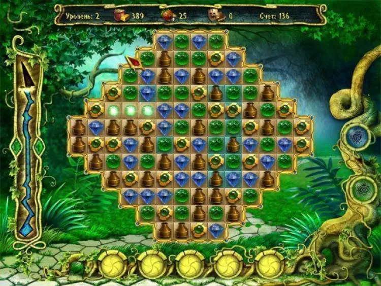 Чтобы добыть нужные материалы просто соединяйте одинаковые фишки в непрерывные цепочки при помощи мыши. Любая цепочка должна состоять не менее чем из 3 одинаковых элементов, но чем она будет длиннее, тем лучше: в этом случае вы сможете заработать гораздо больше очков. Под некоторыми фишками есть мраморные клетки.