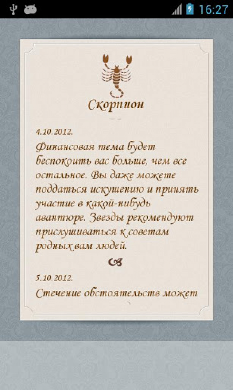 Гороскоп для бизнеса Узнай, что тебя сегодня ждет. Качай Гороскоп для Бизнеса, ты будешь готов к любым ситуациям, которые тебя ждут. Гороскоп на сегодня и на шесть дней. Можешь разместить свой гороскоп в вконтакт’е, factbook’e, отправить деловому партнёру на почту.