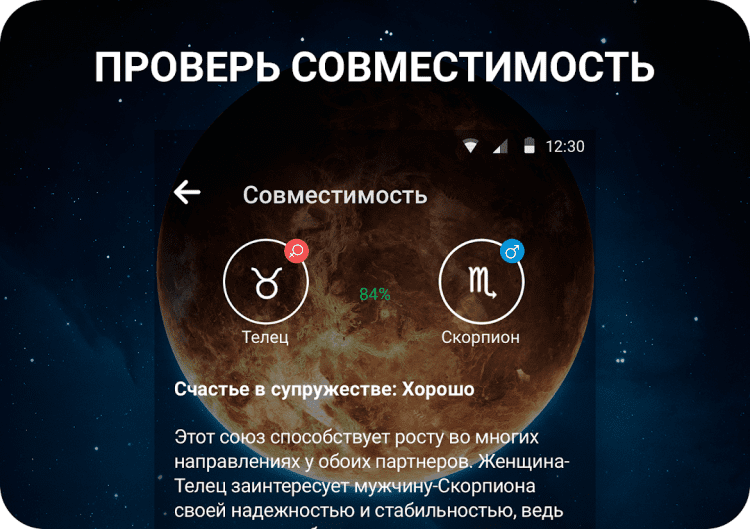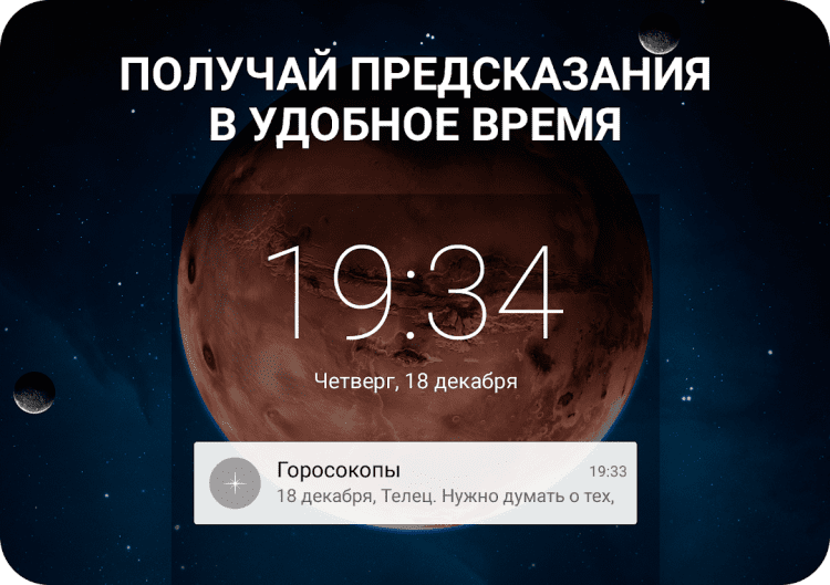 Благодаря этой программе, вы сможете в любой момент читать гороскоп для себя и своих близких, получать ежедневные уведомления с прогнозами, а так же делиться прогнозами с друзьями в социальных сетях.