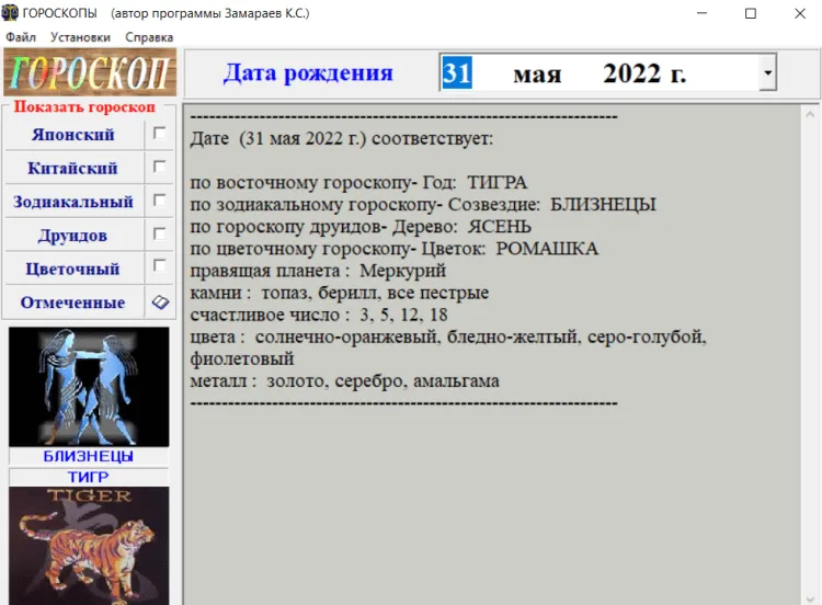 - распечатать на принтере все или избранные гороскопы;