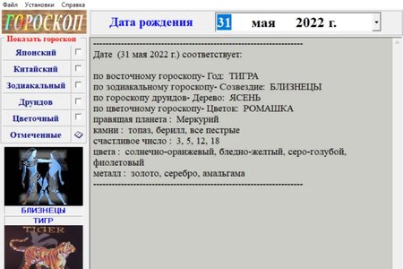 - - быстро узнать гороскоп по введенной дате рождения;