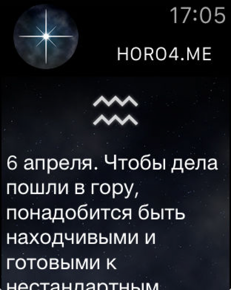 Благодаря этой программе, вы сможете в любой момент читать гороскоп для себя и своих близких, получать ежедневные уведомления с прогнозами, а так же делиться прогнозами с друзьями в социальных сетях.