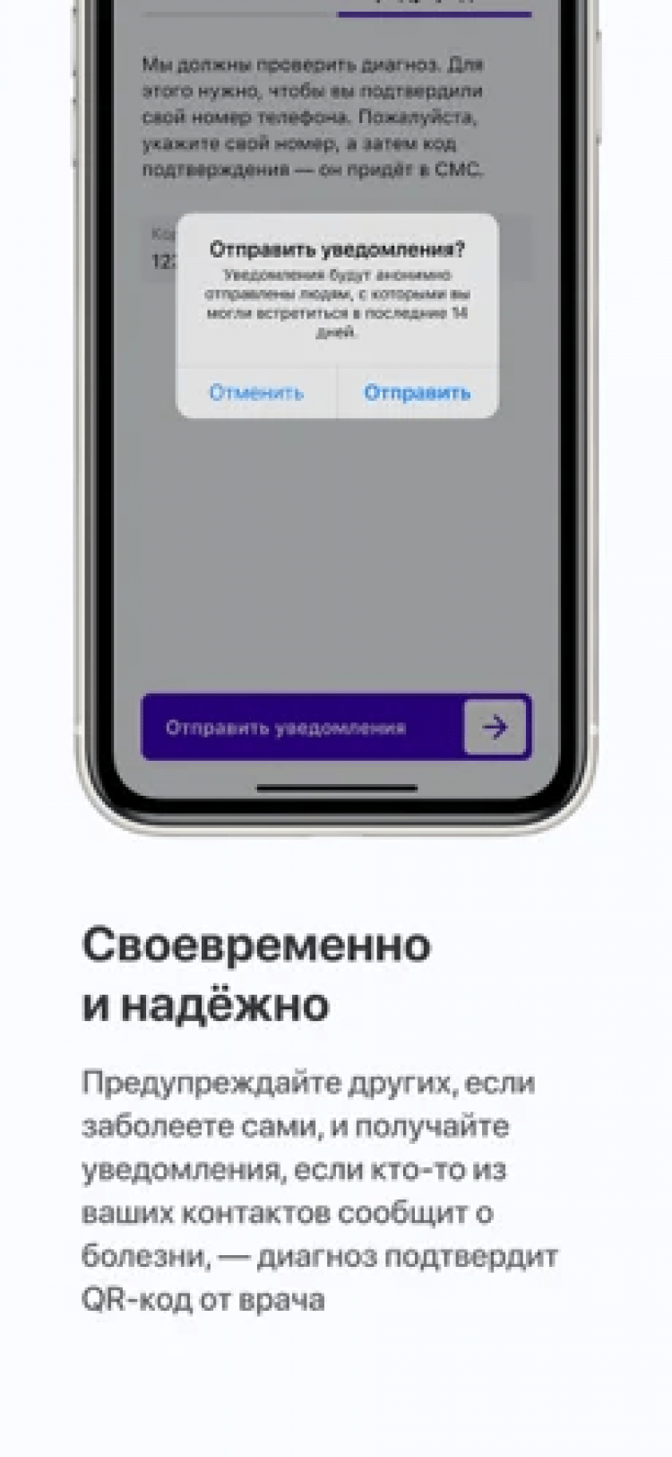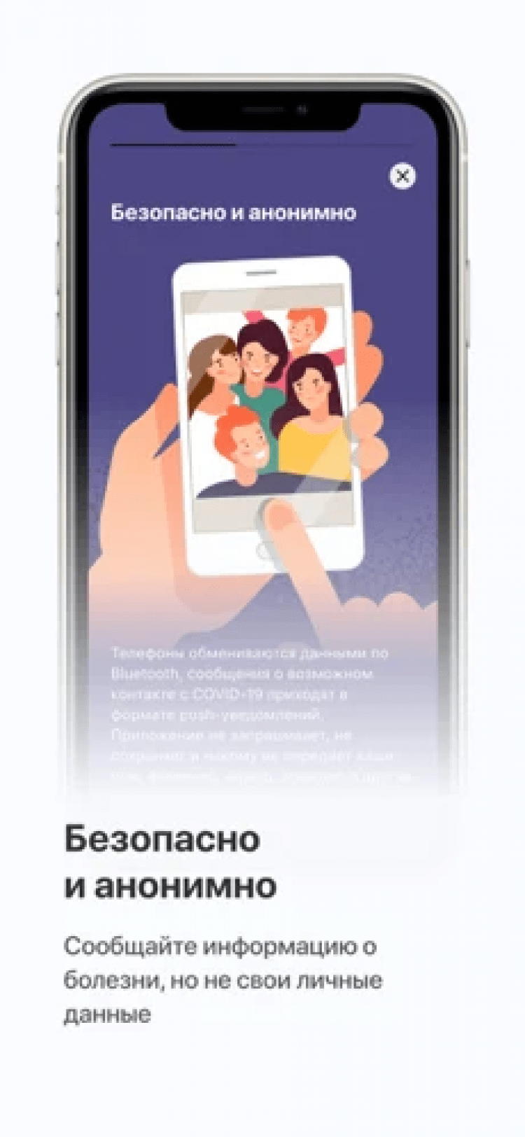 - получение push-уведомлений о нахождении поблизости с человеком, заболевшим COVID-19;