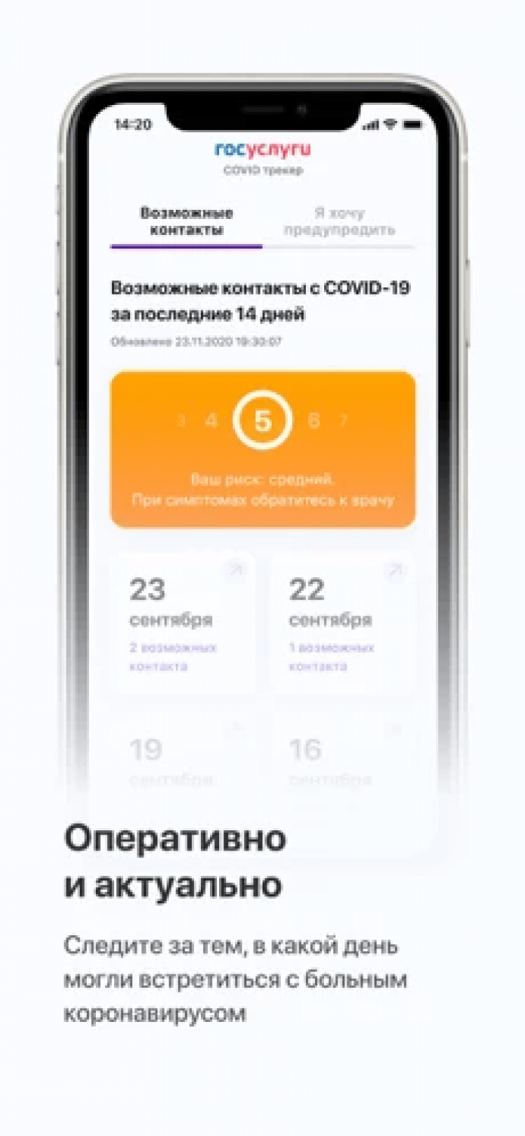 Госуслуги.COVID трекер — это программа, благодаря которой вы сможете узнавать о контактах с людьми, заболевшими COVID-19.