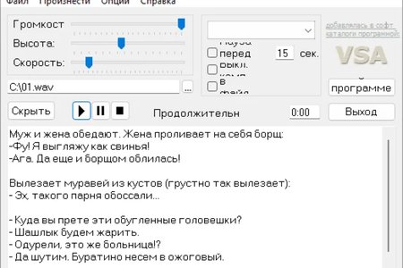 - монолог можно сохранить в звуковой файл, что позволяет прослушать текст не только на компьютере, но и на чем-нибудь другом (магнитофон, mp3 плеер и т.п.);