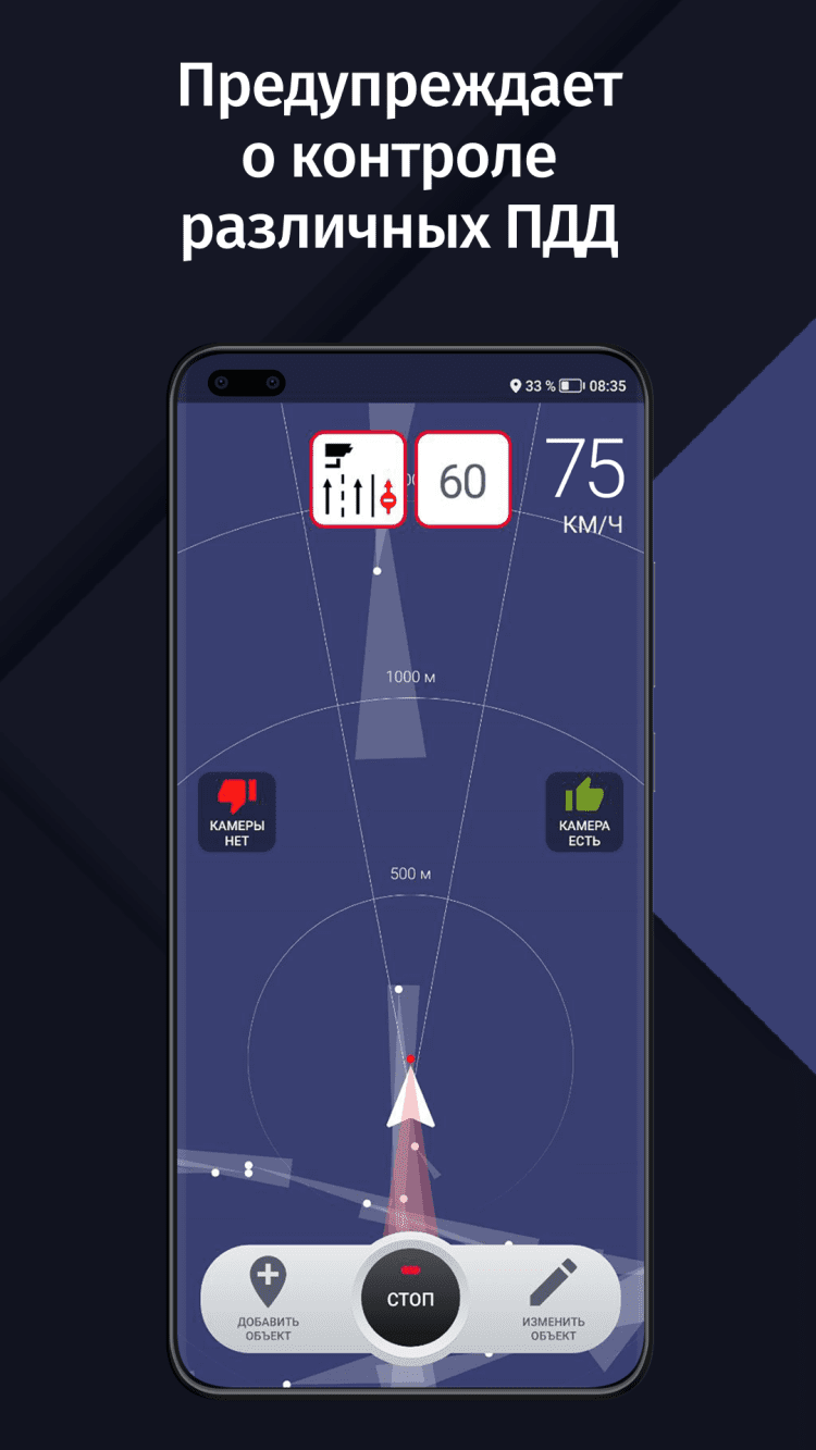 Приложение GPS АнтиРадар (детектор) FREE предупредит вас о стационарных камерах и радарах ДПС на дороге. Приложение может работать в фоновом режиме вместе с другими приложениями, например, навигаторами. База приложения покрывает все регионы России, и регулярно пополняется информацией о новых камерах/радарах.