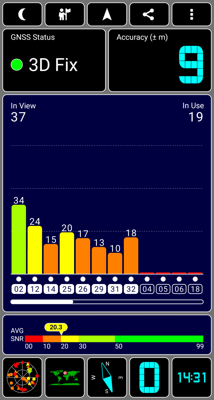 GPS Test Приложение, отображающее информацию с GPS-модуля вашего мобильного устройства. Проведите тест, в ходе которого вы узнаете уровень приема сигнала, спутник, к которому вы подключены и многое другое.