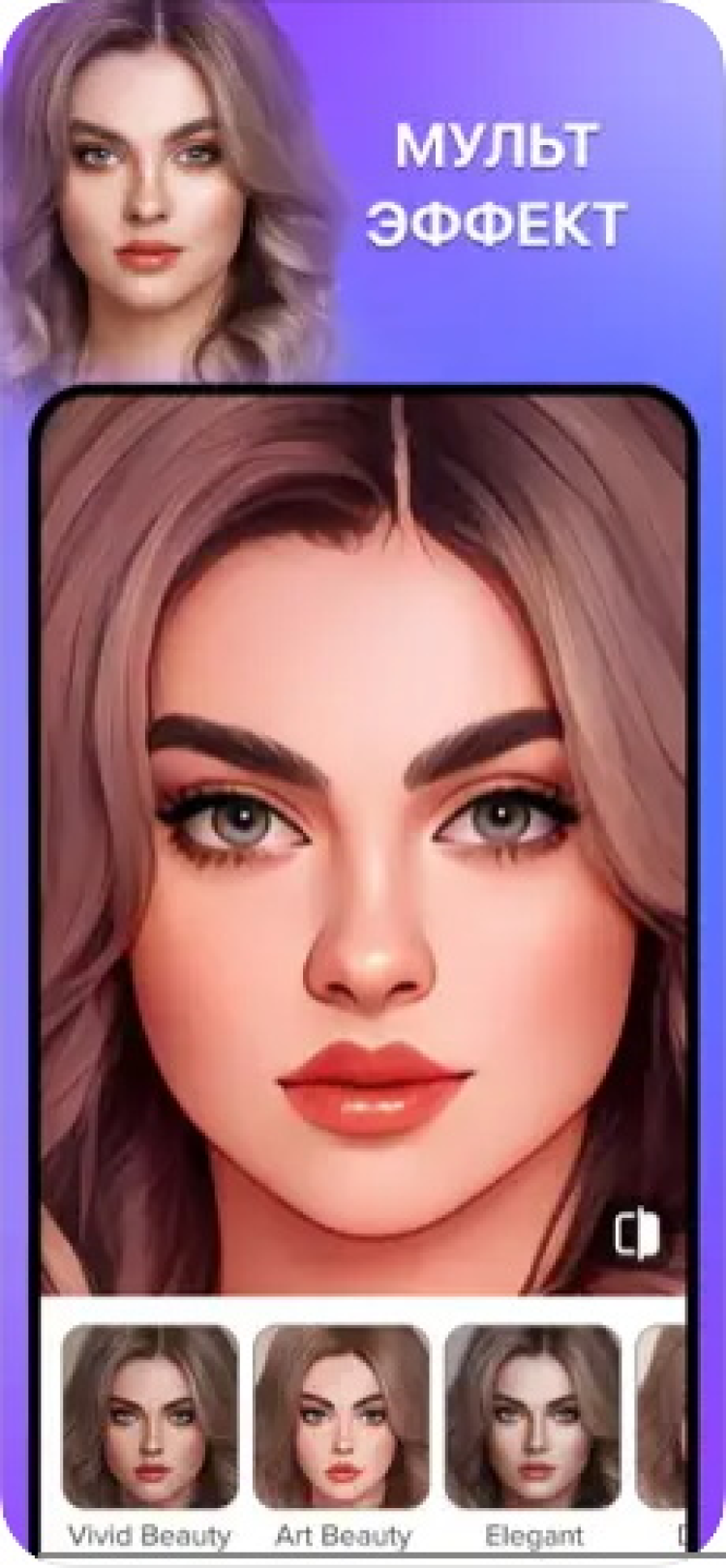 - функция изменения размера глаз, губ, изменения тона кожи, цвета волос и т.д;