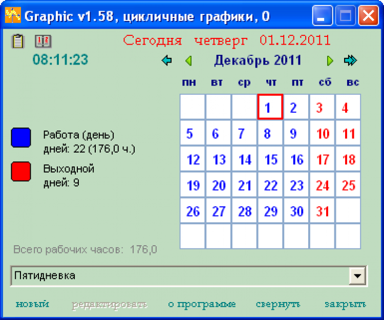 Для создания рабочего графика, рекомендуем скачать Graphic для настольного компьютера. Программа позволяет формировать цикличные графики, создавать календарь на текущий год. Допускается использование в качестве календаря, начиная с 1901 года и до 9999 г.