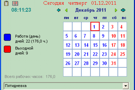 - подсчет отработанных часов, количества рабочих и выходных дней за текущий период;