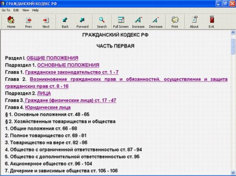 Гражданский кодекс РФ - это кодекс в формате e-book с возможностью добавления своей рекламной информации.