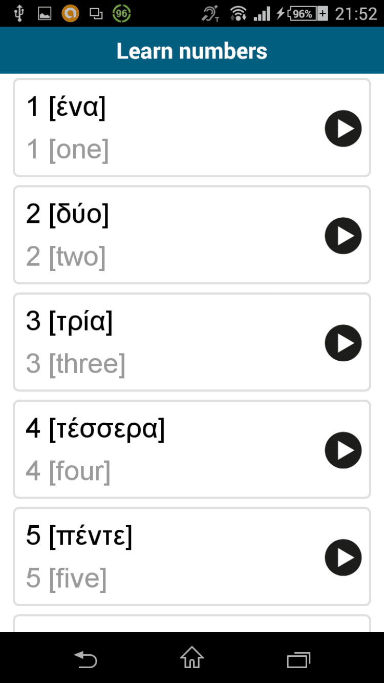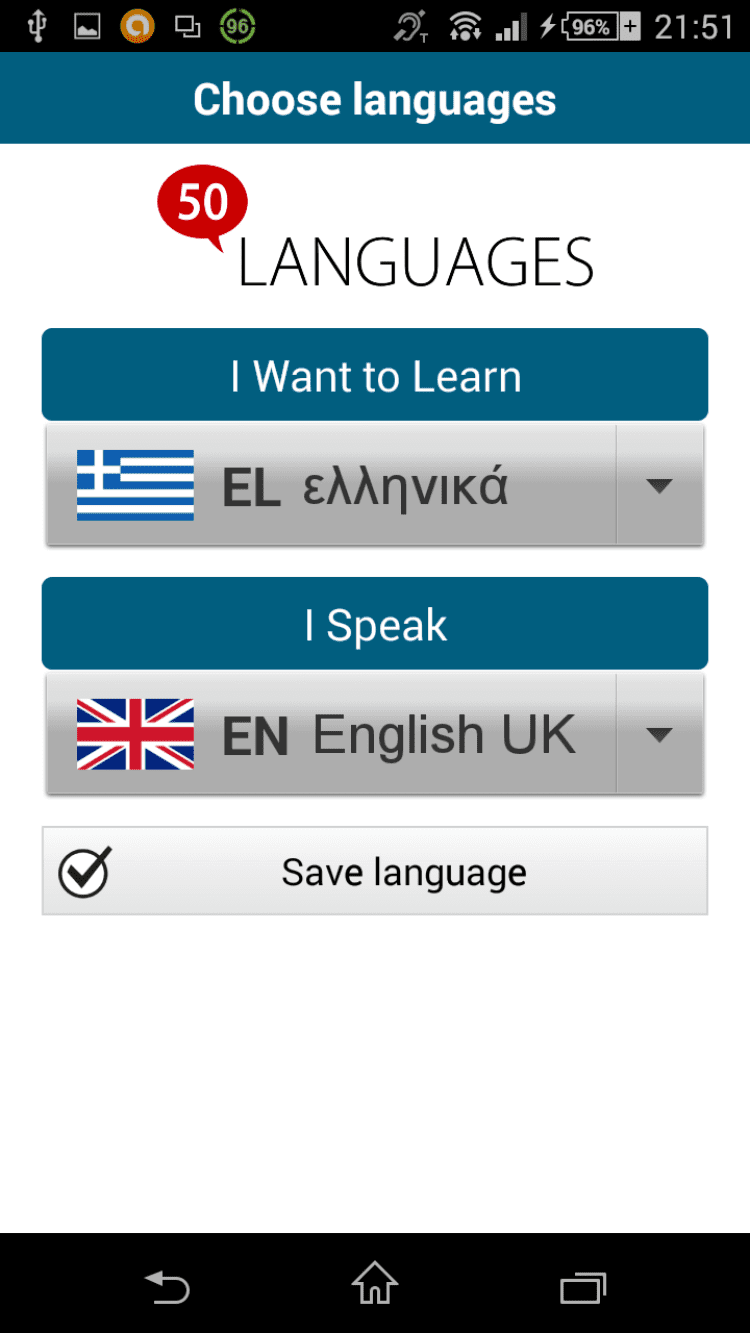 Греческий 50 языков В этой программе содержится 100 уроков, дающих возможность начинающим выучить базовую лексику. Даже не имея достаточных знаний на данный момент, Вы очень быстро научитесь свободно говорить короткими предложениями в реальных жизненных ситуациях. Чтобы получить наибольшую пользу от 50языков, учите по одному уроку в день и регулярно повторяйте пройденное за предыдущие уроки.