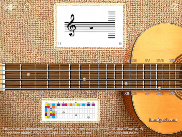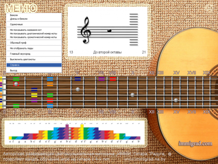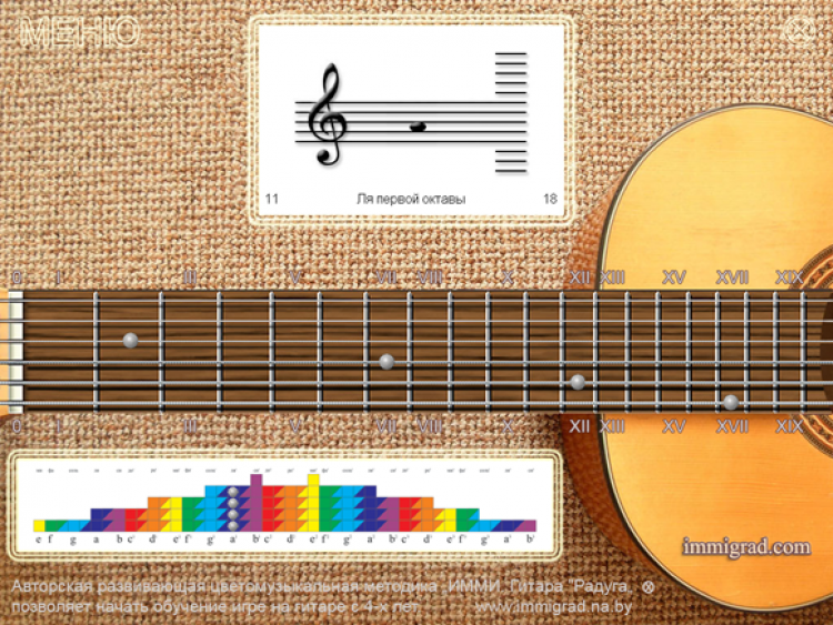 GRif Notes - это обучающая программа, которая поможет начинающему гитаристу выучить ноты на нотном стане и запомнить их расположение на грифе классической шестиструнной гитары.