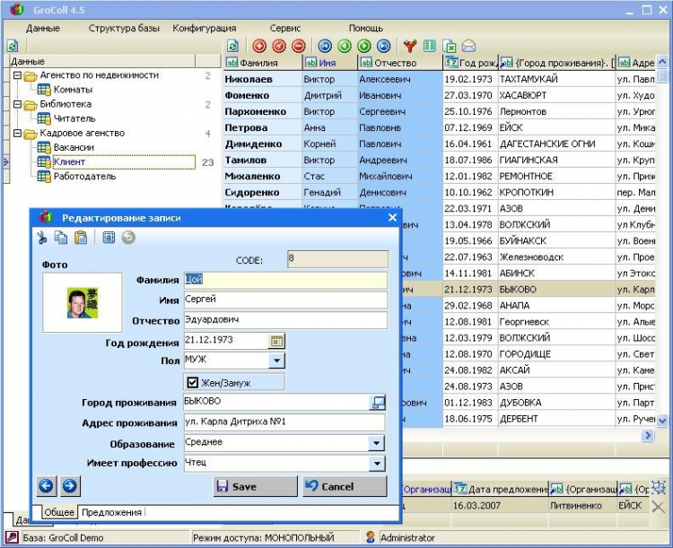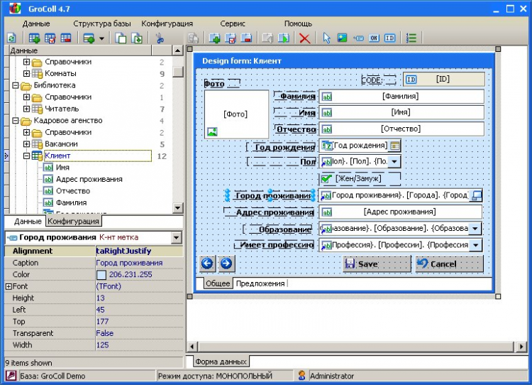 GroColl - это программа предназначена для универсального хранения информации любой структуры. Это могут быть различные справочники, картотеки, коллекции, записные книжки, а также базы данных для предприятий и организаций. Программа позволяет определить структуру и визуальное представление данных индивидуально под конкретные требования, тем самым значительно расширить диапазон ее применения. Создание структуры баз производится исключительно в визуальной форме диалога и не требуют от пользователя фундаментальных знаний в области построения реляционных баз данных, при этом созданные базы могут иметь любую степень сложности. Таким образом, нет необходимости обращаться к специалисту за тем, что можно сделать самому, и в довольно короткие сроки.