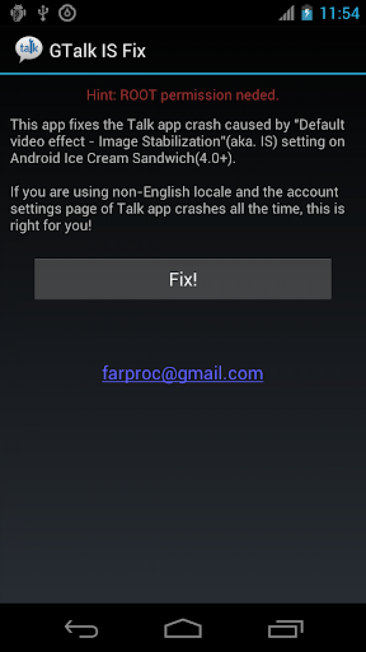 GTalk IS Fix (ROOT) Программа, которая поможет вам исправить ошибку приложения Google Talk, связанный с передачей видео или изображений.