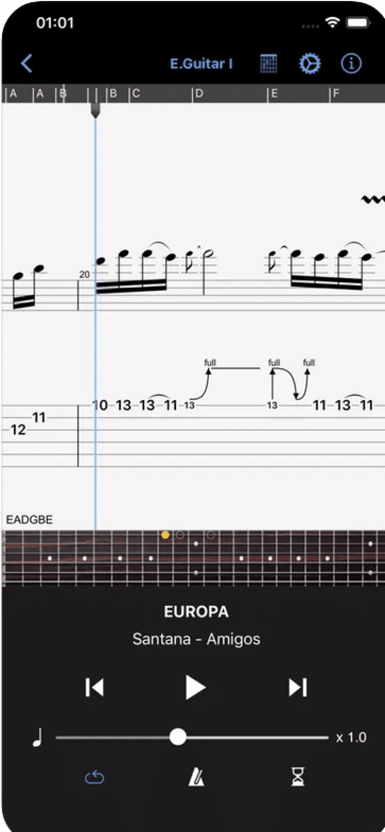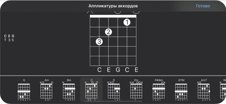 - встроенный построитель и определитель гитарных аккордов;