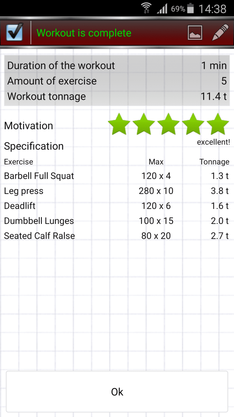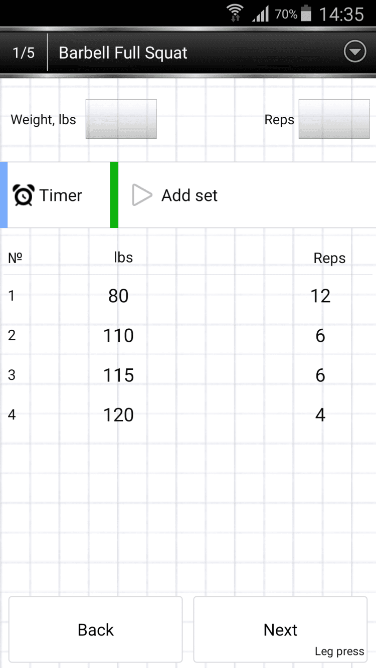 - отображение прироста результатов по упражнениям в каждом подходе;