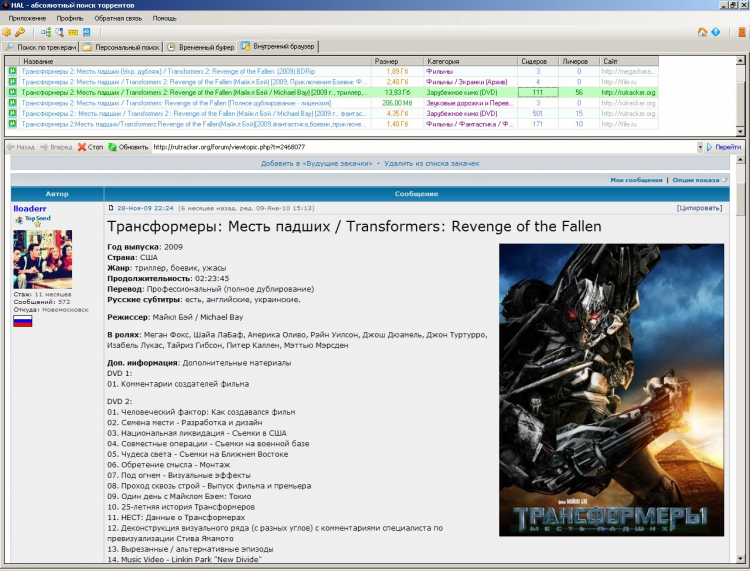 HAL - это специальная программа, предназначенная для быстрого и удобного поиска торрент-файлов в Интернет. Благодаря реализованному в ней инновационному механизму поиска, HAL позволяет всего за несколько мгновений, найти нужный торрент-файл практически на любую тему. Программа HAL будет полезна всем тем, кто так или иначе пользуется торрентами.