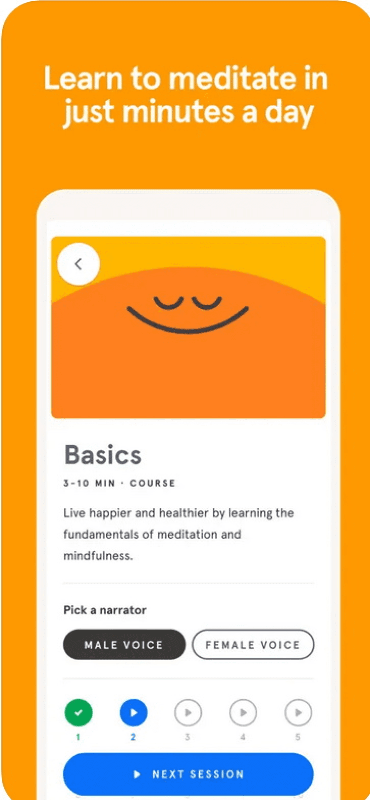 Headspace — одна из самых популярных программ среди тех, кто решил заняться медитацией. Поможет бесплатно получить доступ к базовым практикам, необходимым для новичков, а также откроет доступ к сотням других практик за дополнительную плату.
