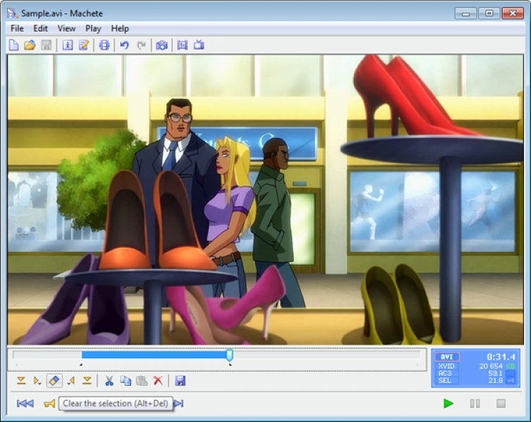 Machete обладает простым, интуитивно понятным интерфейсом, что в сочетании с хорошим функционалом, делает ее практически идеальным инструментом для быстрого редактирования видео. Используя эту программу можно удалять из видео ненужные фрагменты, копировать, перемещать, миксовать и сохранять их.