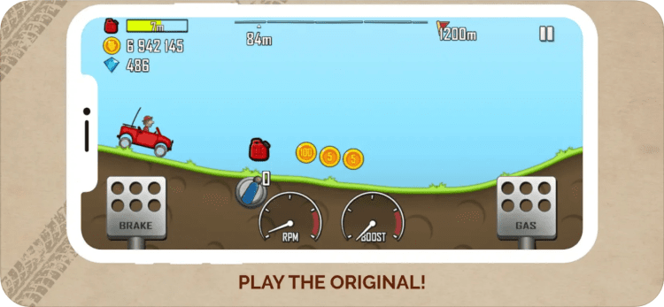 Hill Climb Racing в этом приложении вам предстоит прокатиться по невообразимым трассам, используя самые разнообразные виды транспортных средств. Проедьте как можно дальше, стараясь не перевернуться, зарабатывайте игровые очки, открывайте новые трассы и машины и делитесь рекордами с друзьями.
