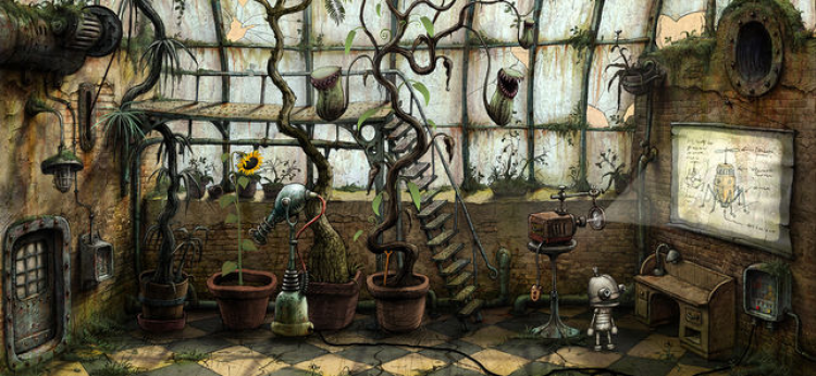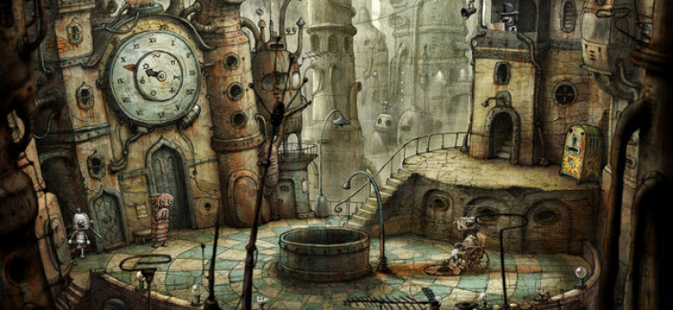 - Атмосферный мир. Мультяшная графика радует глаз и заставляет с внимательно рассматривать детализированный мир в поисках разгадки. Стилистика Machinarium iOS понравится фанатам стимпанка.