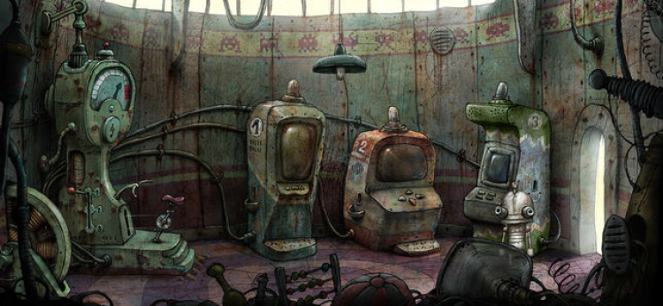 - Интересное управление. В Machinarium нет стандартных диалогов — лишь иногда над главным героем появляется облако, которое передает его мысли. Отсутствуют инструкции и подсказки. Игроку стоит прислушиваться к Йозефу и быть внимательным к окружению, ведь практически каждый элемент локации может быть ключом к разгадке.