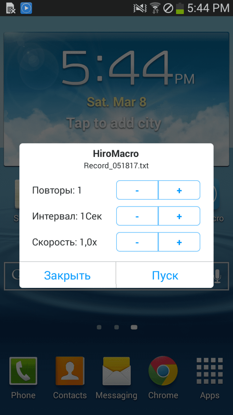 Автоматический кликер для мобильных устройств под управлением Android. Все заданные в программе клики записываются в скрипт, что позволит воспроизводить их повторно в любой момент.