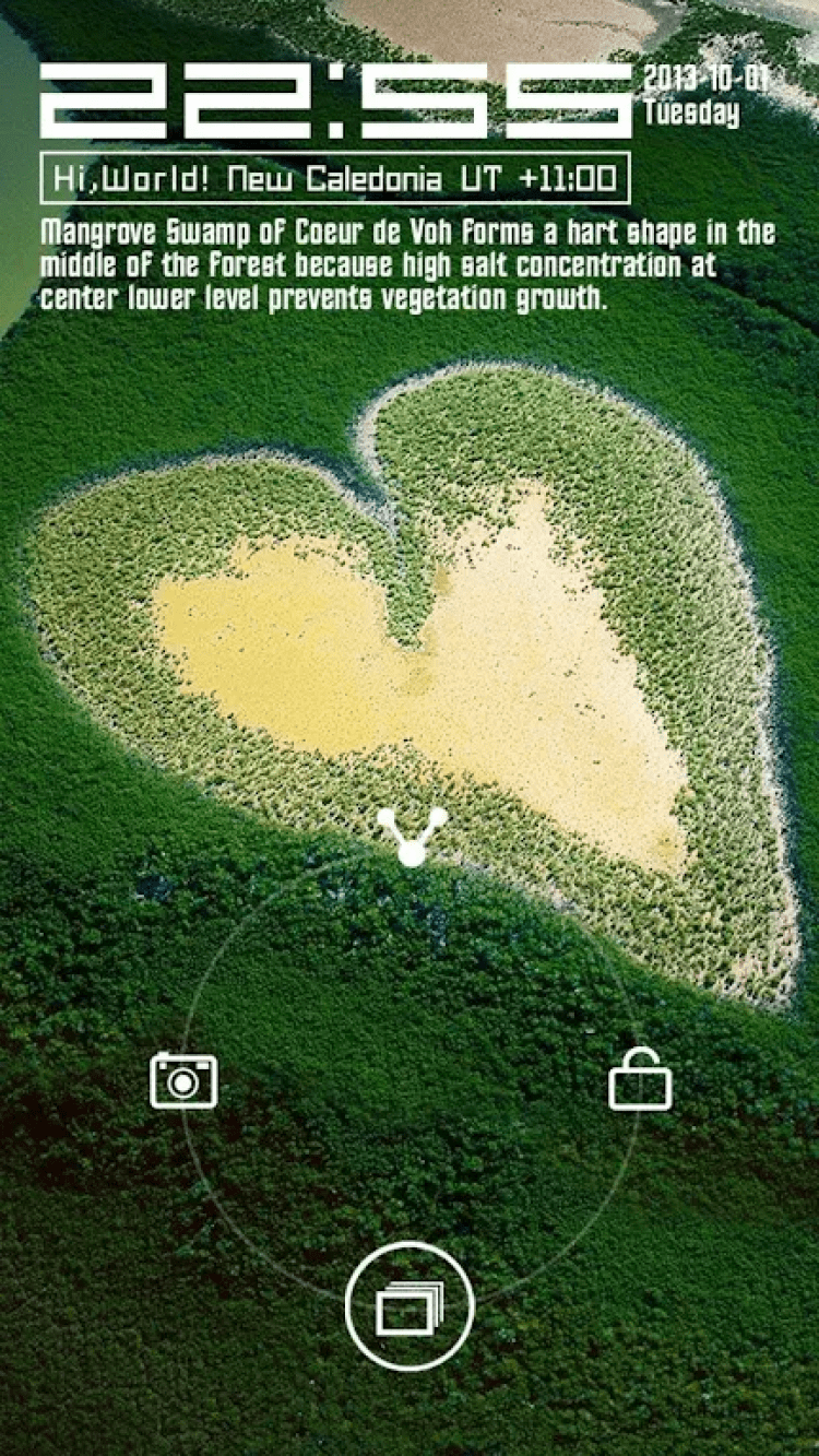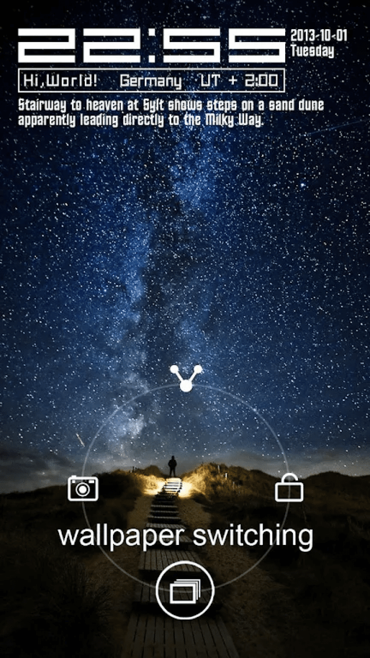 Hi,World! — это красивая тема оформления для программы GO Locker, каждое утро устанавливающая новое изображение с видами со всего мира на экран блокировки вашего устройства. Картинками из приложения вы сможете поделиться с друзьями на Facebook, Twitter или Google+.