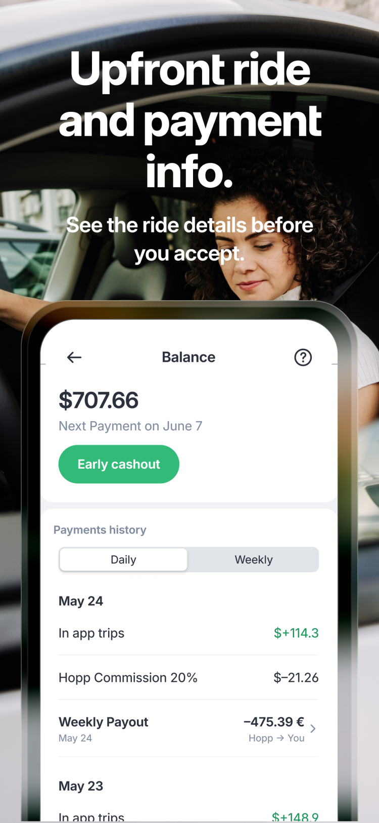 Зарабатывайте больше с каждой поездкой, используя Hopp Driver APK