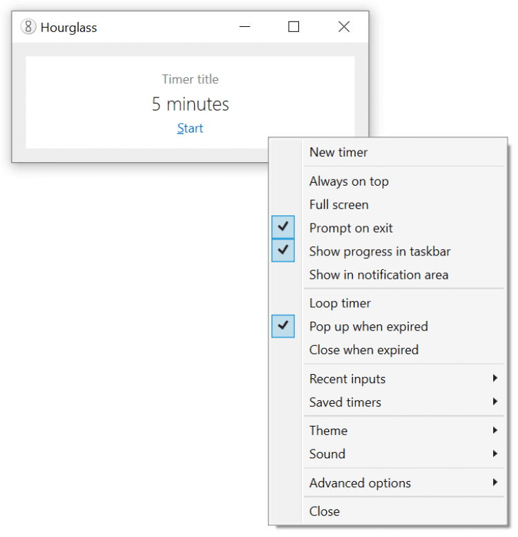 Hourglass — это очень простой таймер для Windows со множеством полезных настроек. Распространяется бесплатно, доступе в виде установщика и портативной версии.