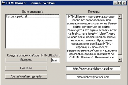 HTMLBlanker - это программа сканирует HTML - документы и исправляет в оговорённых местах ссылки, снабжая их тэгом - target="_blank", так что все внешние ссылки будут открываться в новом окне.