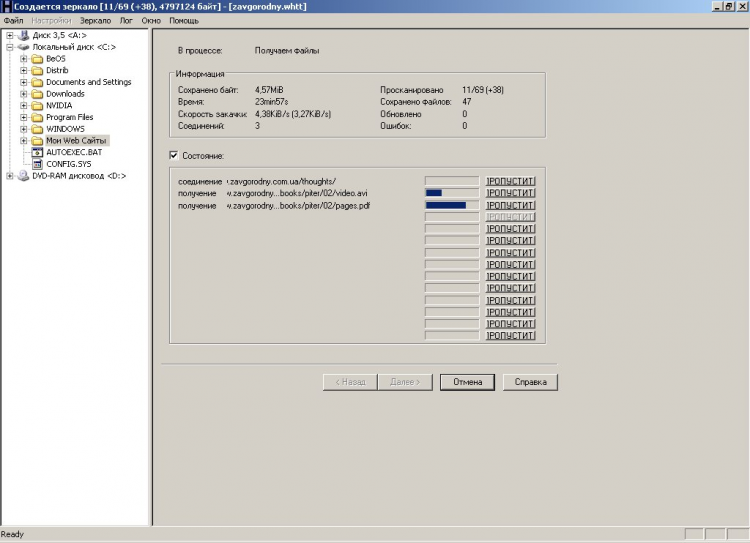 - программа поддерживает функцию одновременного скачивания нескольких страниц, разрешает возобновлять прерванную загрузку и дает пользователю самостоятельно определять, какой конкретно контент следует сохранять на компьютер;