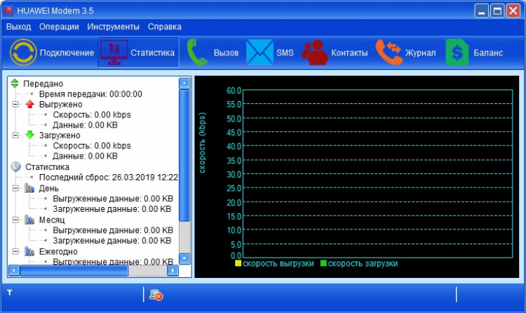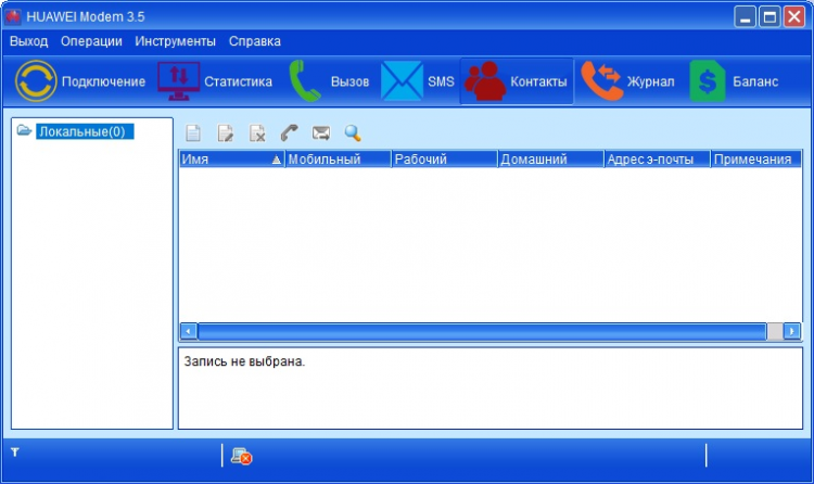 Перед вами программа, необходимая для простой и быстрой настройки USB-модемов Huawei. Она позволяет получить доступ к целому ряду параметров модема, а также к готовым профилям сотовых операторов. Помимо изменения настроек, при помощи этой программы вы сможете просматривать статистику соединения, включая объём переданных данных, а также скорость соединения. Здесь вы также найдете информацию по балансу, список сохранённых контактов, а также сможете отправлять SMS, USSD-запросы и, если модем поддерживает соответствующую функцию, даже осуществлять голосовые звонки.