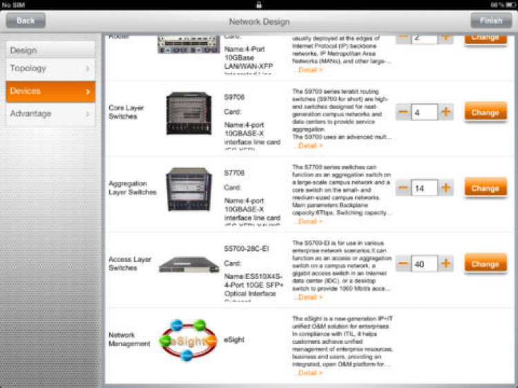 Это приложение позволит вам и вашим партнерам быстро проектировать решения и выбирать наиболее подходящие модели оборудования. Приложение Huawei NetDesigner включает в себя информацию о технических характеристиках большого количества устройств, что поможет вам найти наиболее подходящее устройство и повысить качество сотрудничества с партнерами и обслуживания клиентов.