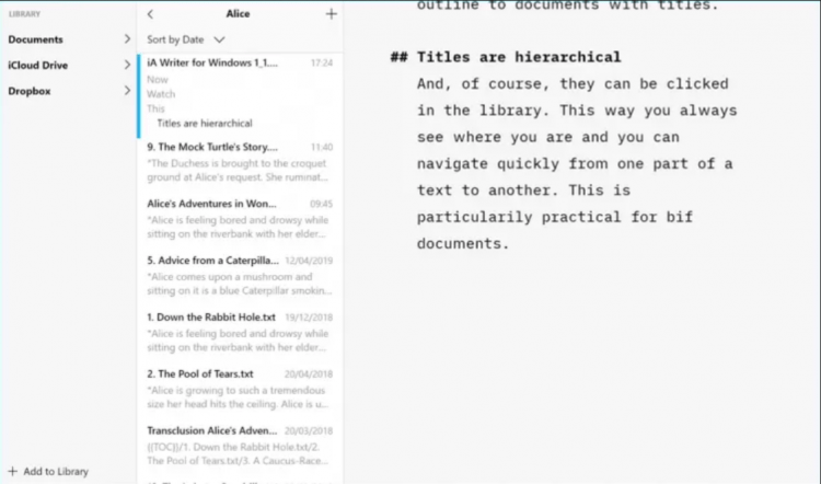 iA Writer это современный текстовый редактор, который позволяет работать как с простым текстом, так и с Markdown-файлами. Редактор отличается минималистичным интерфейсом, под которым скрываются все необходимые функции для работы с текстом, и нечего лишнего.