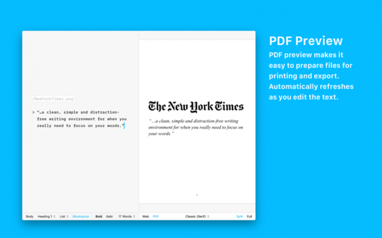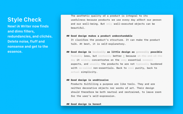 iA Writer - это интересный текстовый редактор для Mac, который избавит от отвлекающих элементов, позволил целиком и полностью сосредоточиться на написании текста.