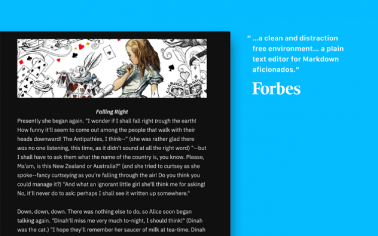 - поддержка Markdown. Форматируйте и структурируйте текст, не отрывая рук от клавиатуры;